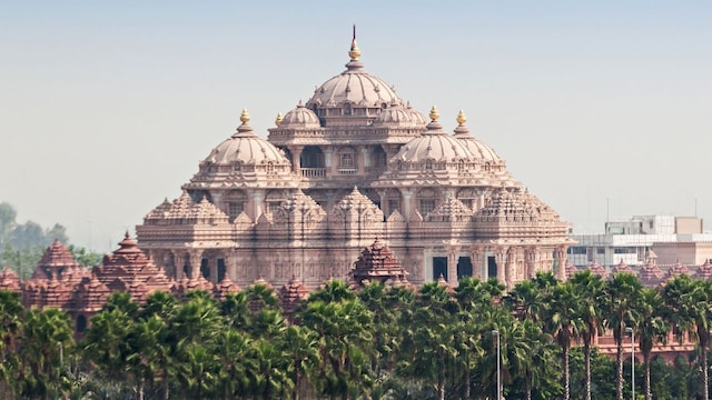 4. Akshardham, Delhi: Swaminarayan Akshardham is a significant tourist destination in Delhi. Built by Bochasanwasi Shri Akshar Purushottam Swaminarayan Sanstha, and guided by Pramukh Swami Maharaj, it covers approximately 100 acres and boasts a visitor center, museum, and art gallery. (Image: Canva)